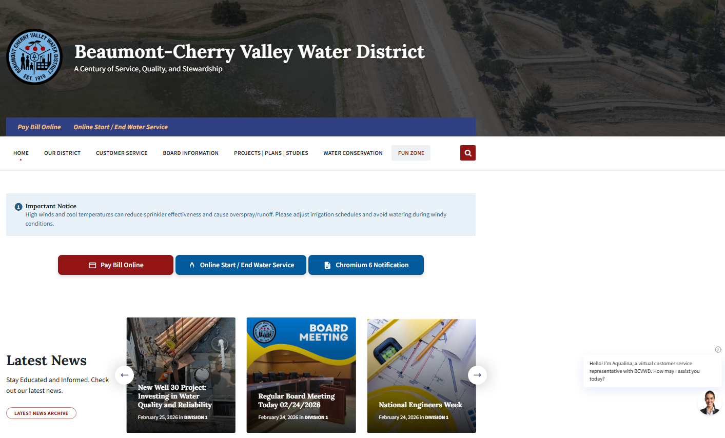 The Beaumont-Cherry Valley Water District continues to update our website to better serve our customers and community. Over the past year, we’ve added new tools, information, and resources designed to improve transparency, accessibility, and ease of use.